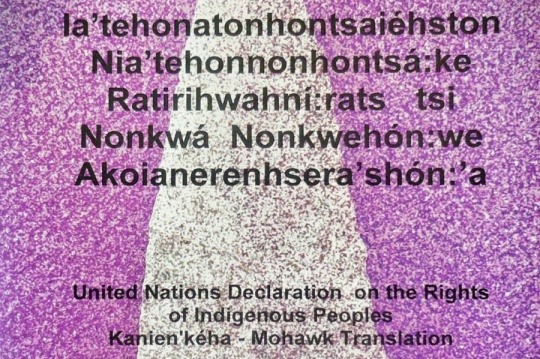 The UN Declaration on the Rights of Indigenous Peoples was translated into Kanien’kehá:ka (Mohawk) by the Mohawk Language Custodians Association of Kanehsatà:ke with financial support from CFSC.