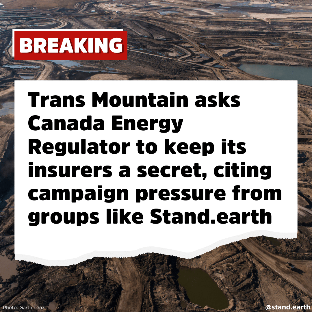 Back in February, we found out that the company had filed a request asking the Canada Energy Regulator (CER) to start keeping the identity of its insurers a secret. The filing explicitly name-dropped Stand.earth and credited the pressure from our movement as the reason why the company was struggling to find insurers to back the project.