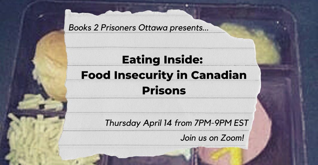 Four panelists with lived experience of what food is like in Canada's prisons will be speaking at a free event on April 14 from 7-9 pm Eastern time. The organizers notes, "We believe that prison food is an often discounted and unaddressed topic which severely impacts the health (physically and psychologically) of incarcerated people." CFSC is pleased to sponsor this event. Find out more and register: https://www.facebook.com/events/1158604764882354/
