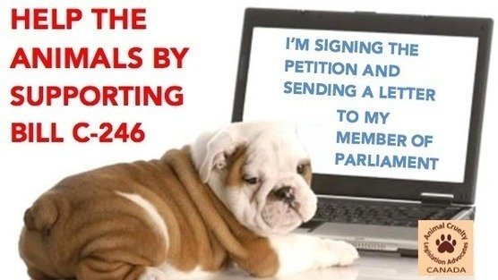 BILL C-246 NEEDS OUR SUPPORT IF IT IS GOING TO BECOME LAW. Thank you for signing the petition and/or sending a letter to your Member of Parliament. If you wish to receive further information or participate in this and other animal cruelty initiatives please check out the following Facebook resources by clicking on the links: