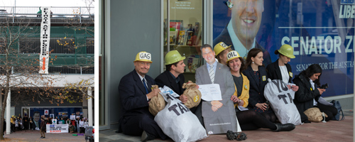 On Tuesday, mothers, GPs, priests, students and retirees peacefully occupied Resources and Energy Minister Josh Frydenberg’s electorate office, whilst outside community members re-branded the pro-fossil fuels Minister’s office a climate crime scene.