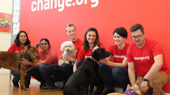 PS: Change.org is proud to be a dog friendly workplace. The picture includes staff with their fur babies, all of which were adopted into happy forever homes.