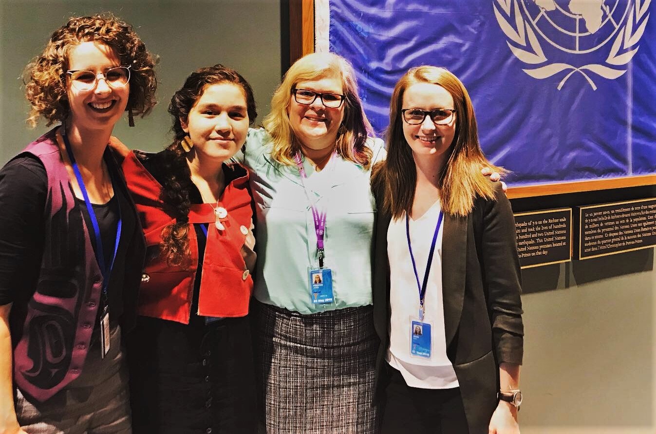 Rachel Singleton-Polster, Haana Edenshaw, Jennifer Preston, and Keira Mann at the UN Permanent Forum on Indigenous Issues