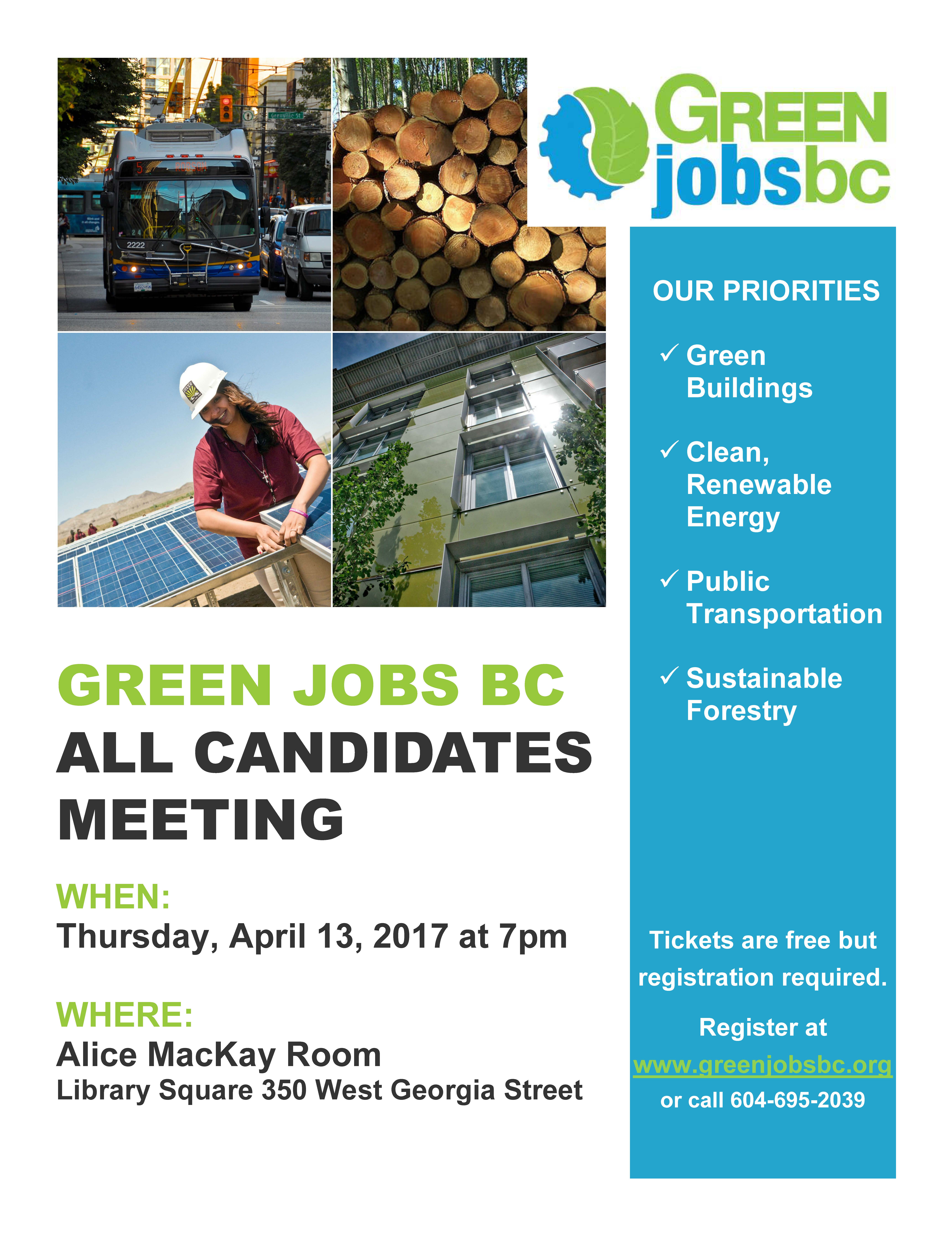 Don't Miss Green Jobs BC's April 13th Candidates Meeting