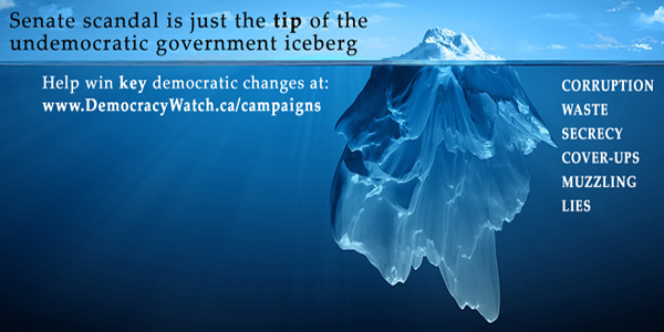 Thank you very much to everyone who has donated recently to support Democracy Watch’s campaigns for changes to help protect you from gouging and abuse by governments and big businesses. Please help spread the word by clicking here to choose your favourite campaign and share it by email, Facebook or Twitter with your friends.