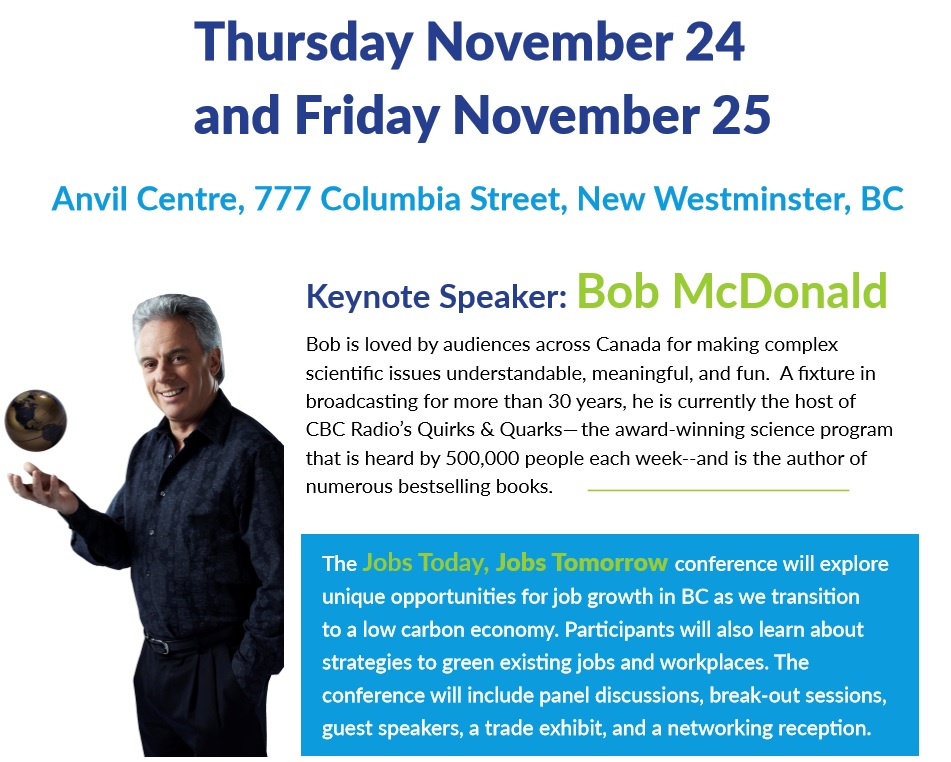 Only Hours Left to Get Early Bird Rate: Jobs Today, Jobs Tomorrow BC's Green Jobs Conference