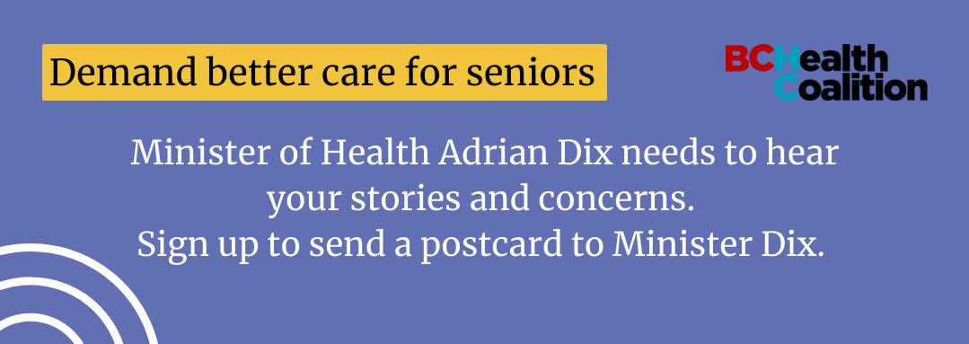 Earlier this month, we shared our disappointment at the BC Government's announcement that they are funding more for-profit long-term care homes -- after making campaign promises to invest in the public and not-for-profit system.